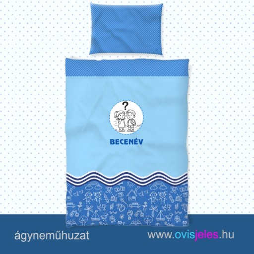 Ez az ágyneműhuzat a gyerek saját ovisjelével és nevével készül – a jel finom vízjelként jelenik meg a mintán, így minden darab személyes és különleges.