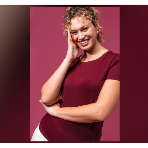 Ez a póló olyan anyukáknak szól, akik szeretik az egyszerű, csinos szabású ruhákat. A lágy esésű, 140 grammos pamutanyag nyári napokon kényelmes viselet, a mélyebb kerek nyakkivágás pedig diszkréten emeli ki a nőies vonalakat. Takarja a vállat, de nem hivalkodó – jól illik a mindennapokhoz, baráti összejövetelekhez, vagy ha csak egy könnyed és praktikus darabot keresel.